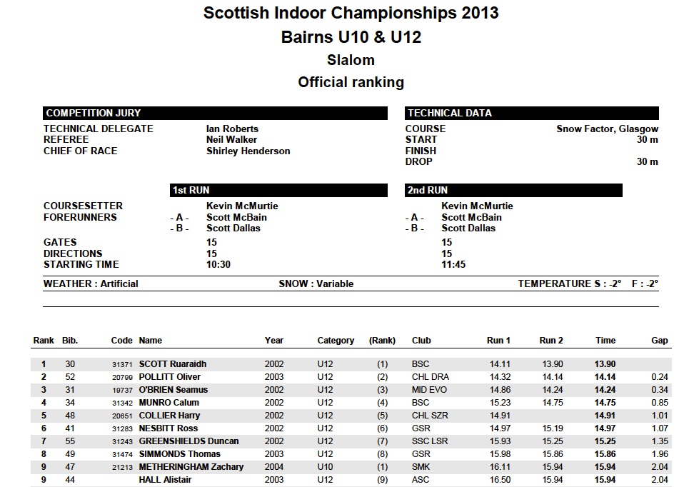 Won the Scottish Indoor Championships Under 10’s with a stonking 2nd run of 15.94 seconds, which also gave me an amazing 9th in the under 12’s !!