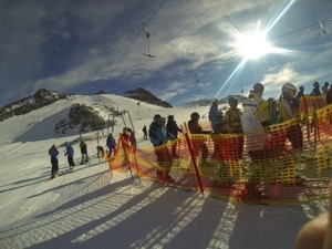 Our first (and only) day of bad weather on the slopes, but as Glen and Ben say, get used to it as you will have to race in it ! We also had a great session of emergency training from Glen, in terms of what to do in an accident, how to get down the mountain safely in a whiteout and general low visibility sking.
