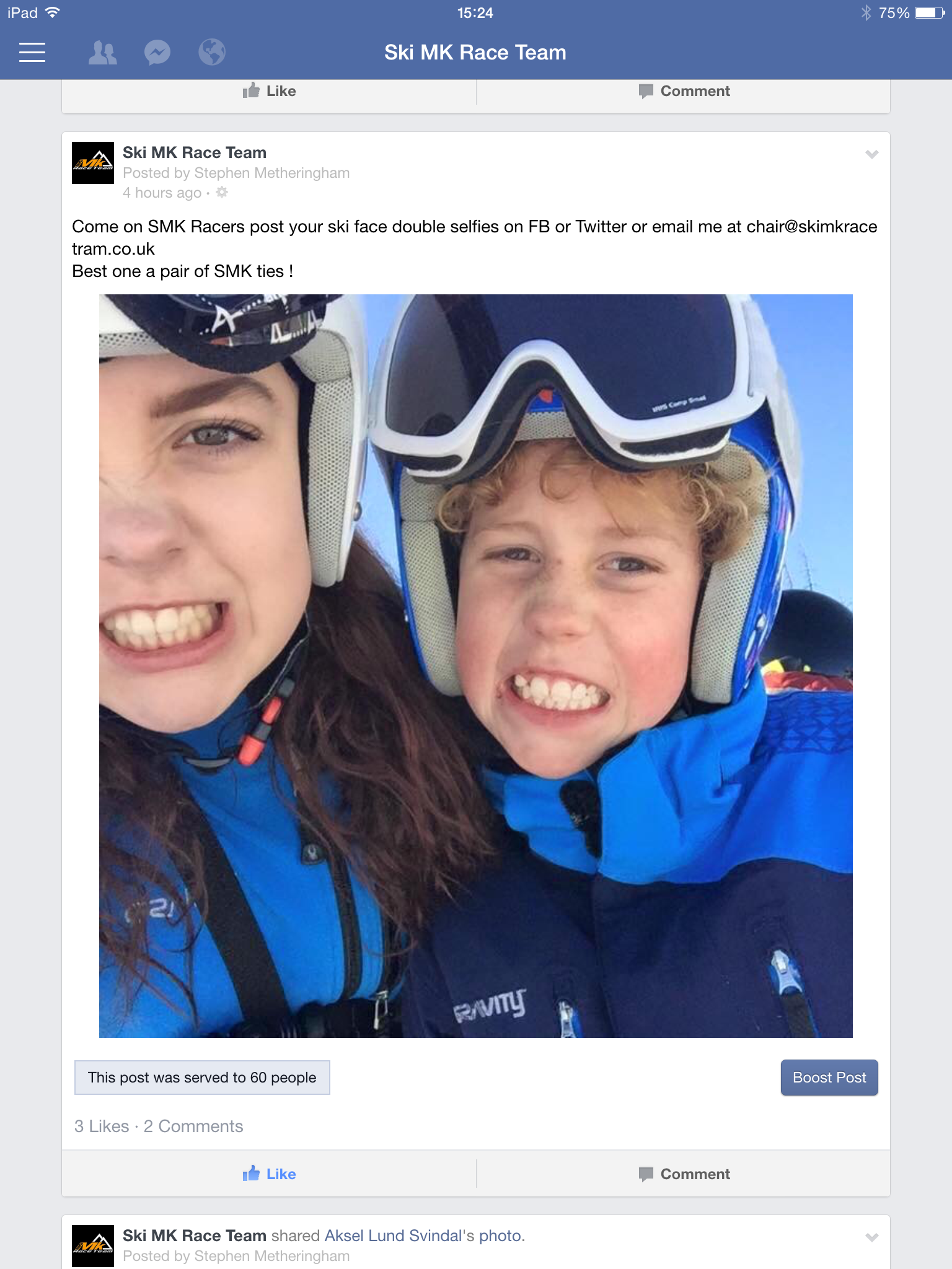 Dad sent me pic of Mum’s amazing fall, (she blamed Dad’s ski prep).
