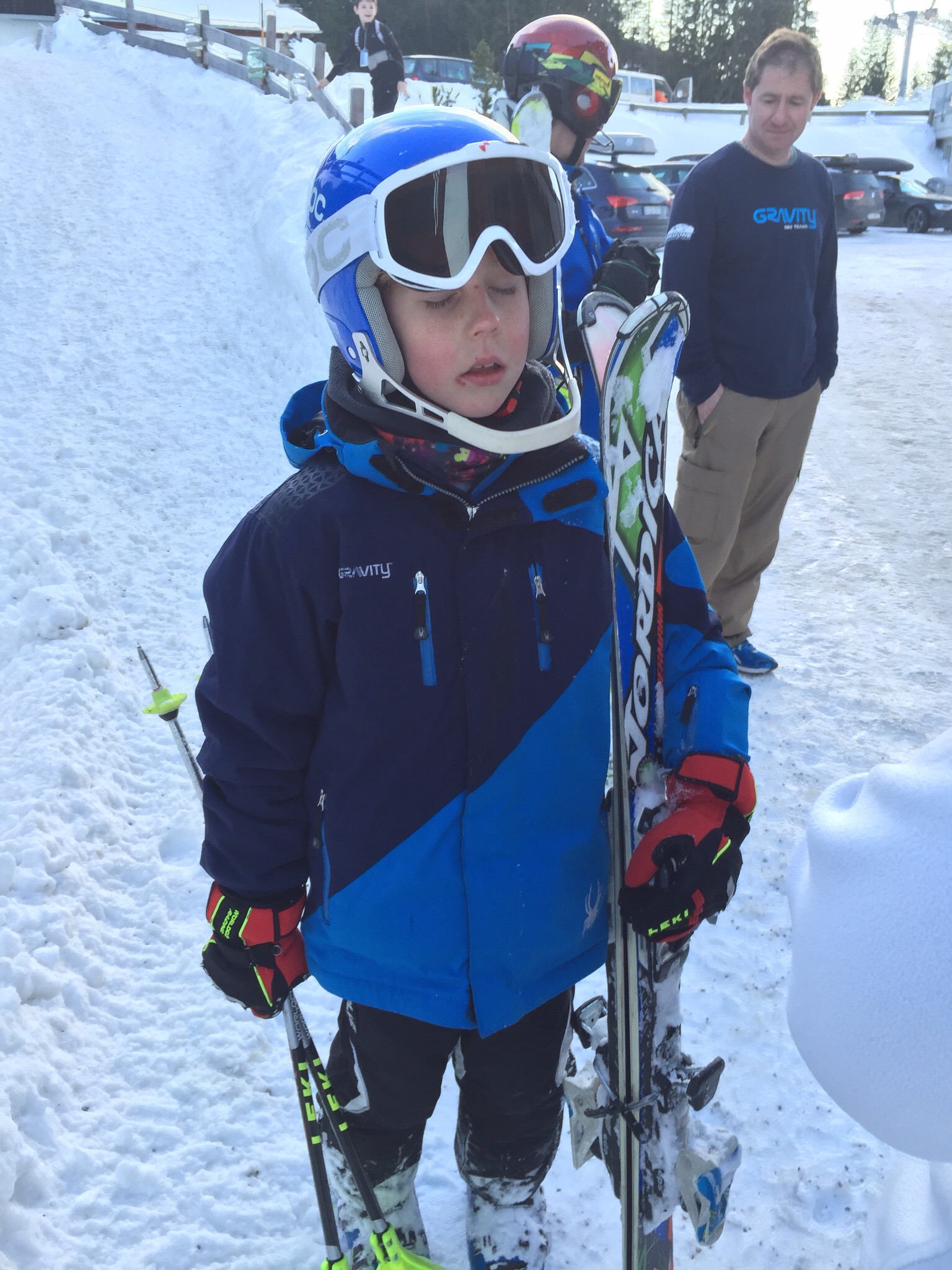 GS skis again, and really getting used to them. Feedback from Coach Matt was really great (“jaw dropping for first runs in the morning, great shape, hip near to snow”). Obviously loads to work on after afternoon runs !!!