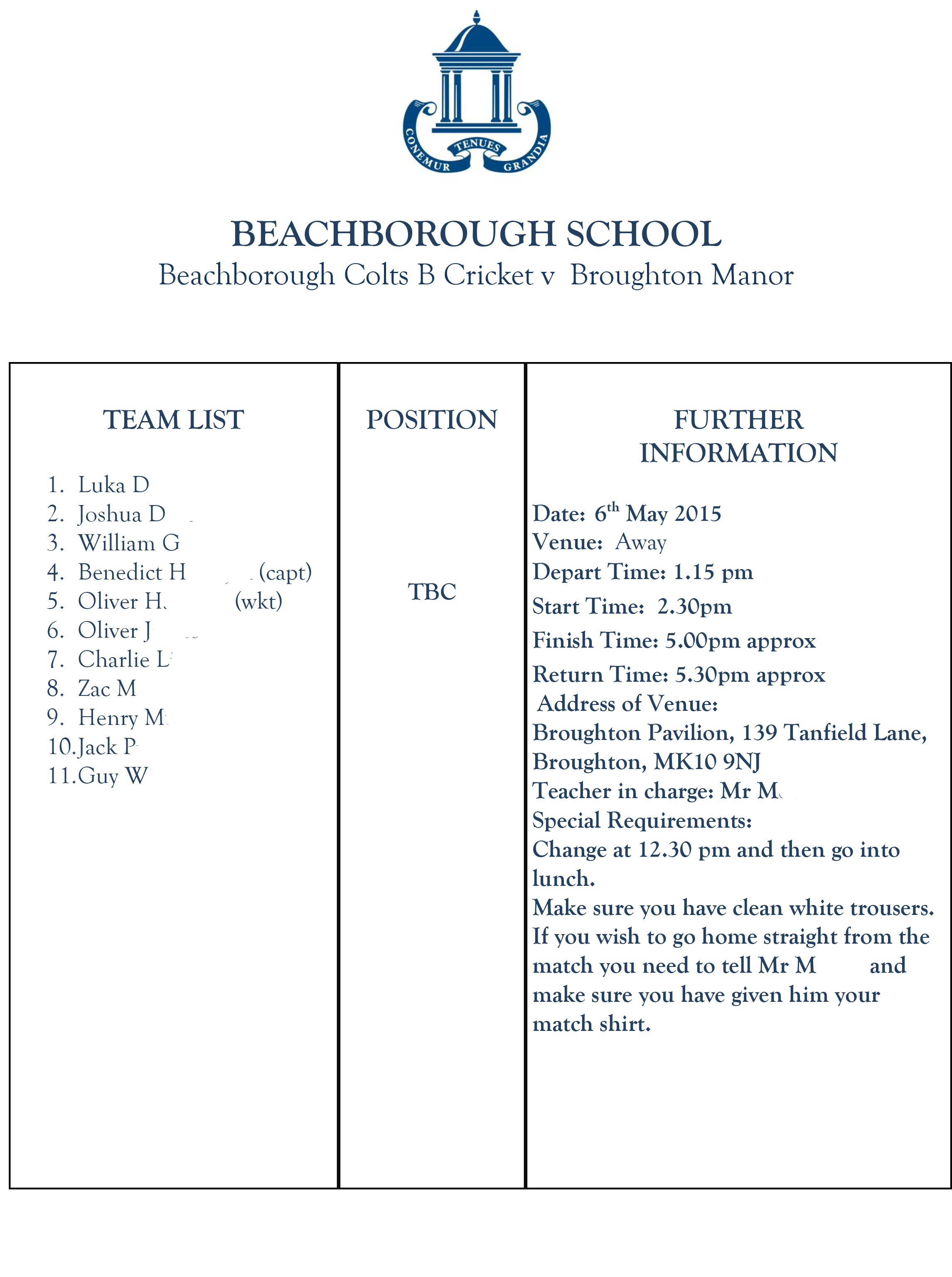 Not been able to trial for Beachborough School Cricket teams, due to rehabilitation on the MCL, but finally got batting time in the nets on Tuesday and obviously did enough to be picked for the Colts B team !