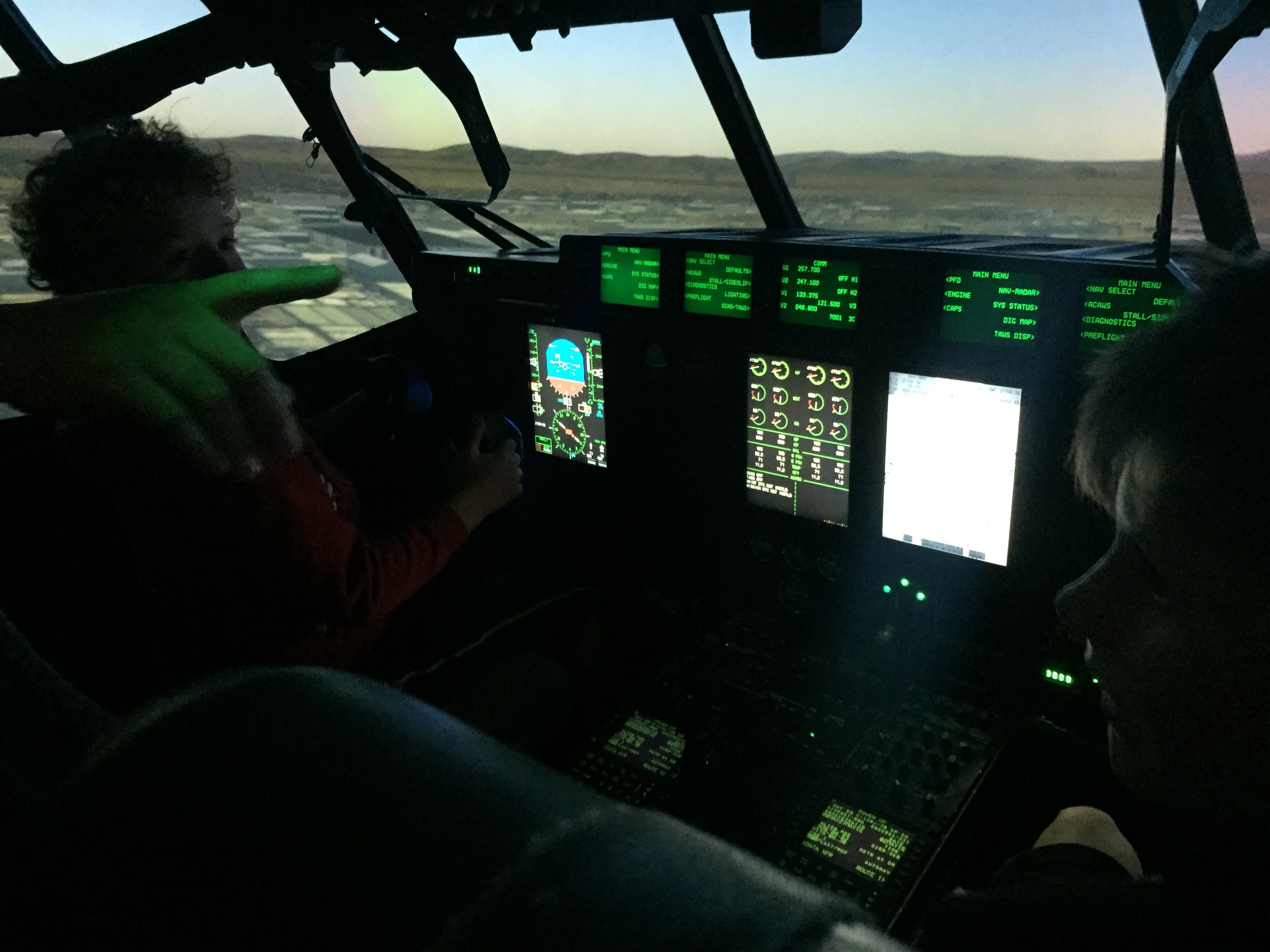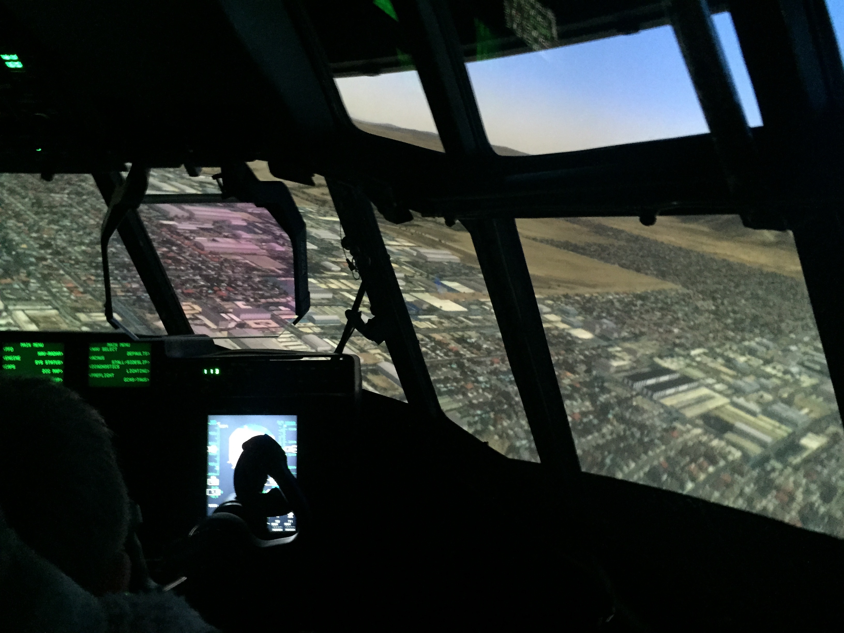 Hercules Flight Simulator – wonder what happens when you crash land – found out very quickly on trying to land – screen goes red !