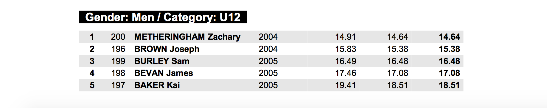 So Run 2 and bibs in reverse order I ran first and with controlled aggression I posted a massively improved 14.14, and Lucas recorded a time of 14.54Lions_CN_Results_1 Lions_CN_Results_2