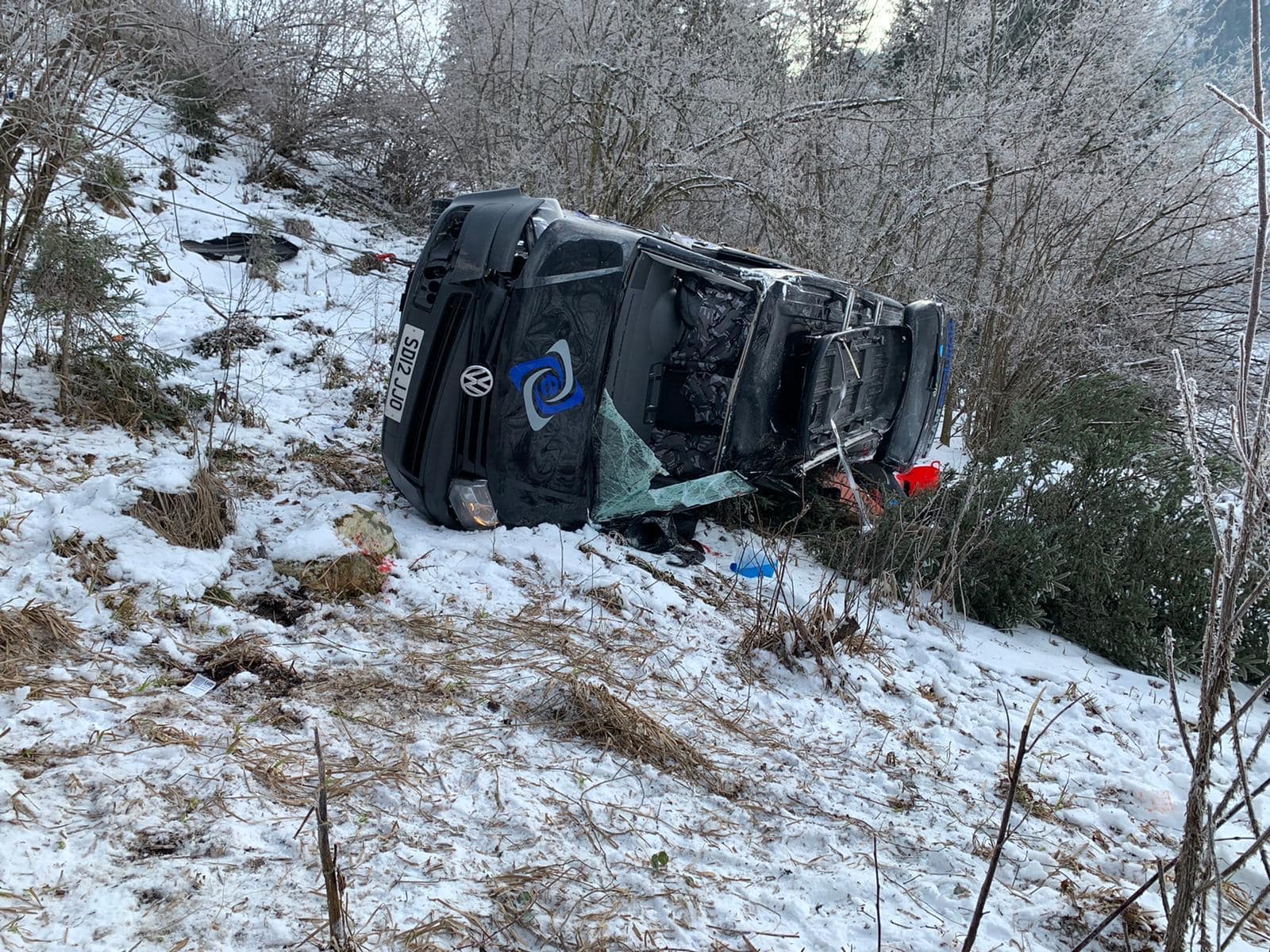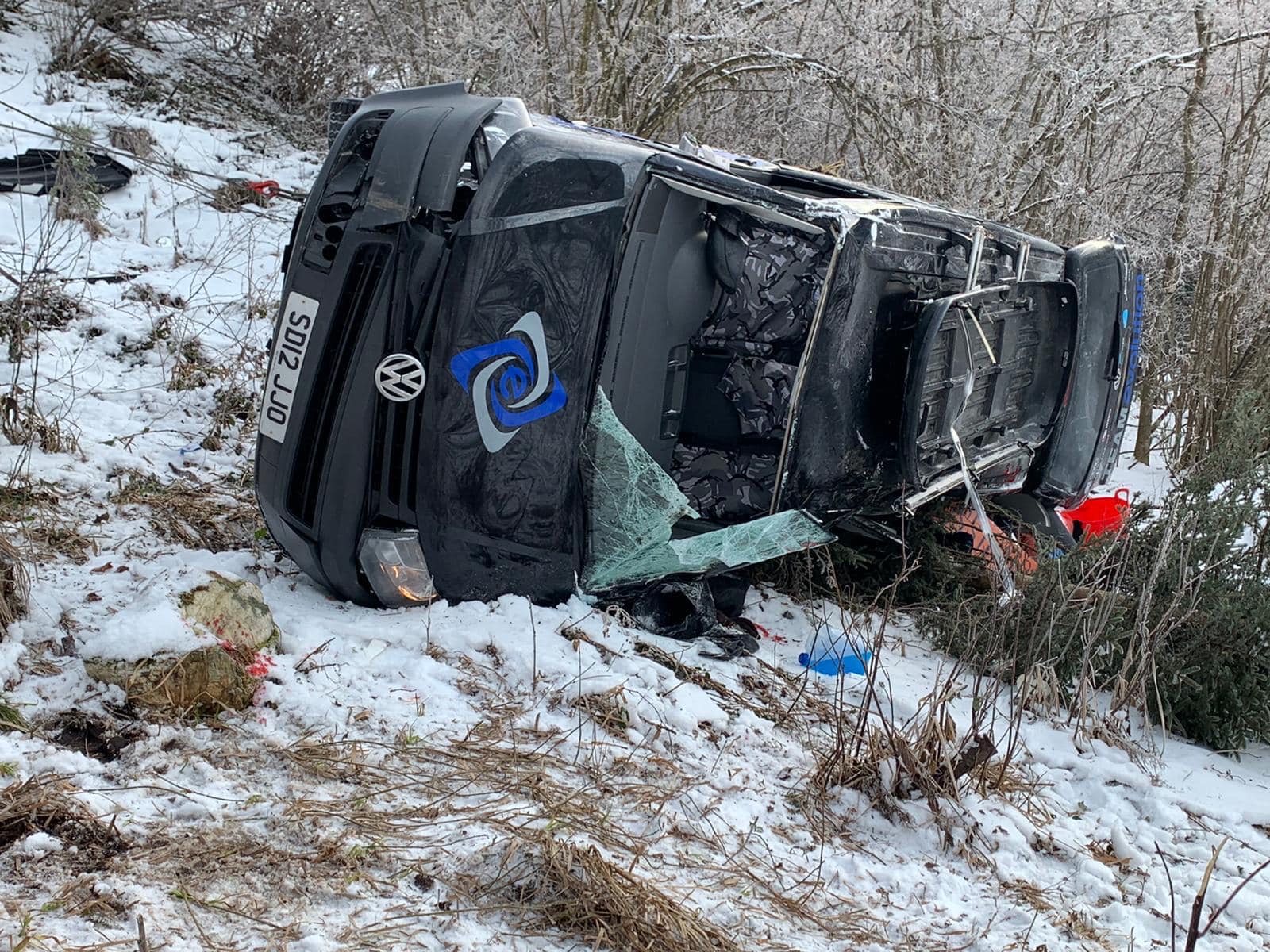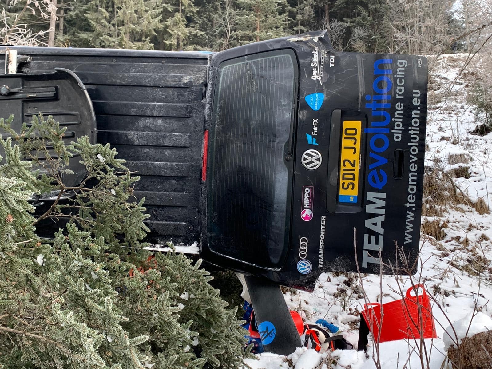 Bad icy conditions and it was over the edge and down the slope. Thank God that Ross, Odi and Axel all ok. A few bruises and cuts, but it could have been so much worse.