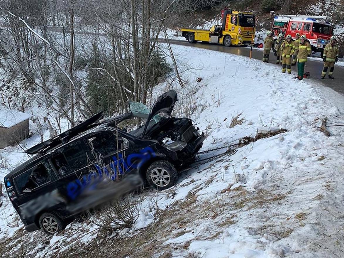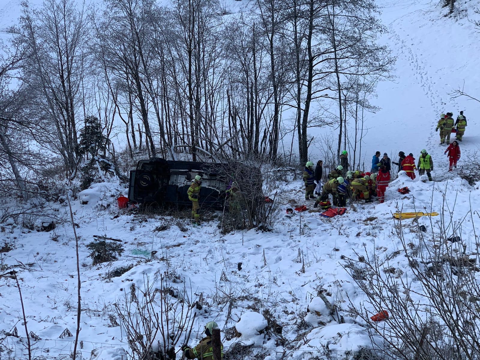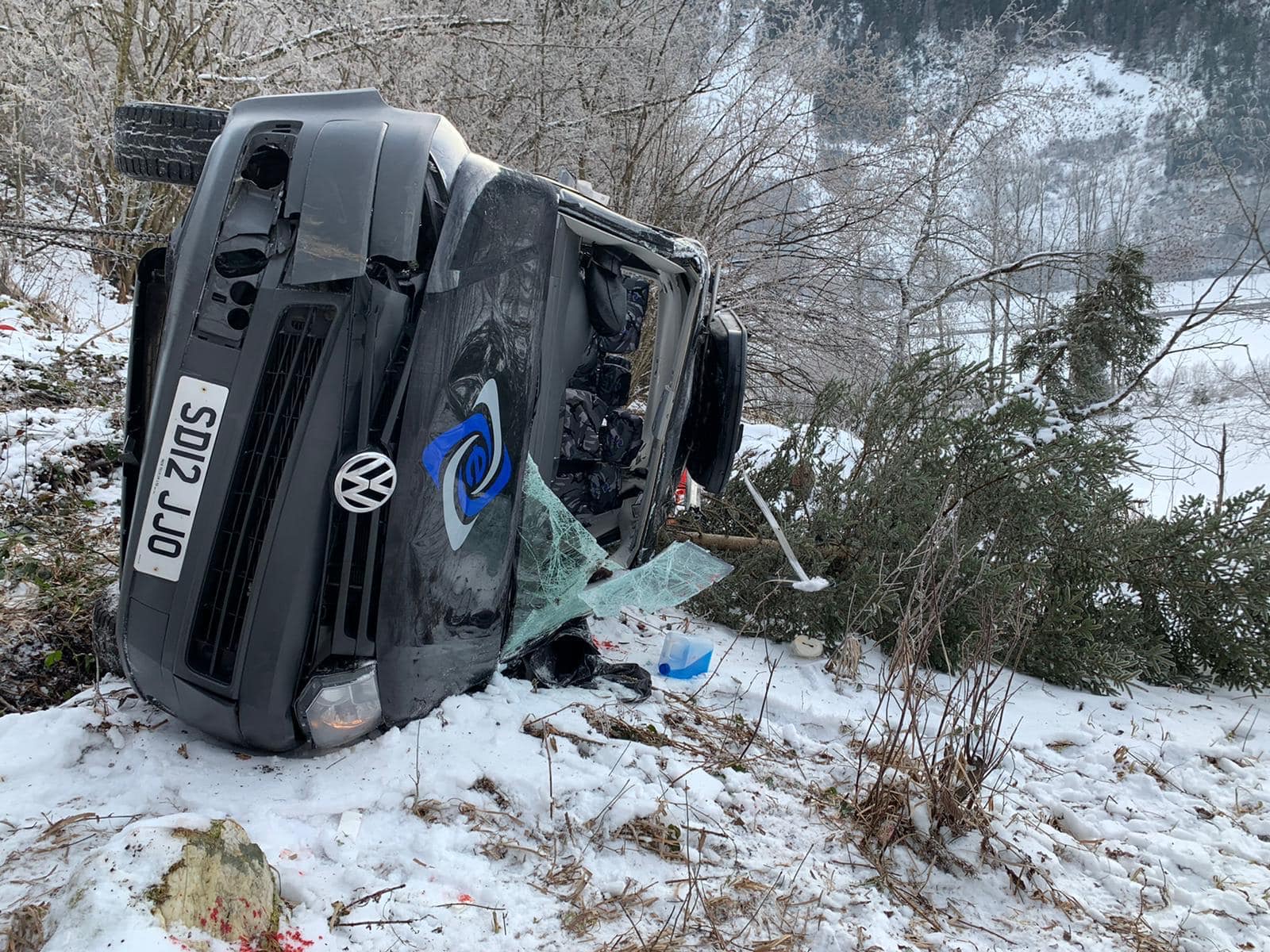 Bad icy conditions and it was over the edge and down the slope. Thank God that Ross, Odi and Axel all ok. A few bruises and cuts, but it could have been so much worse.