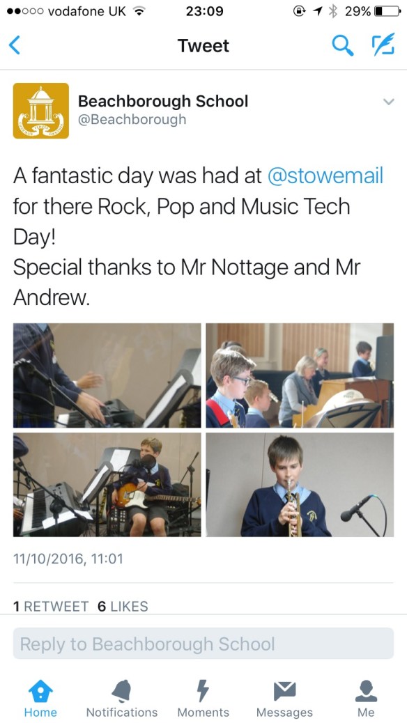 Had a great day at Stowe School at the Rock, Pop & Music Workshop. Recorded tracks in the recording studio and performed to parents and Stowe students.