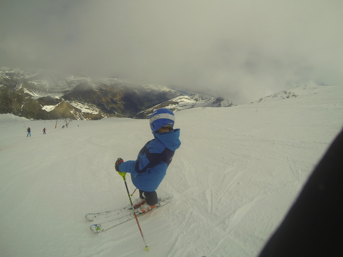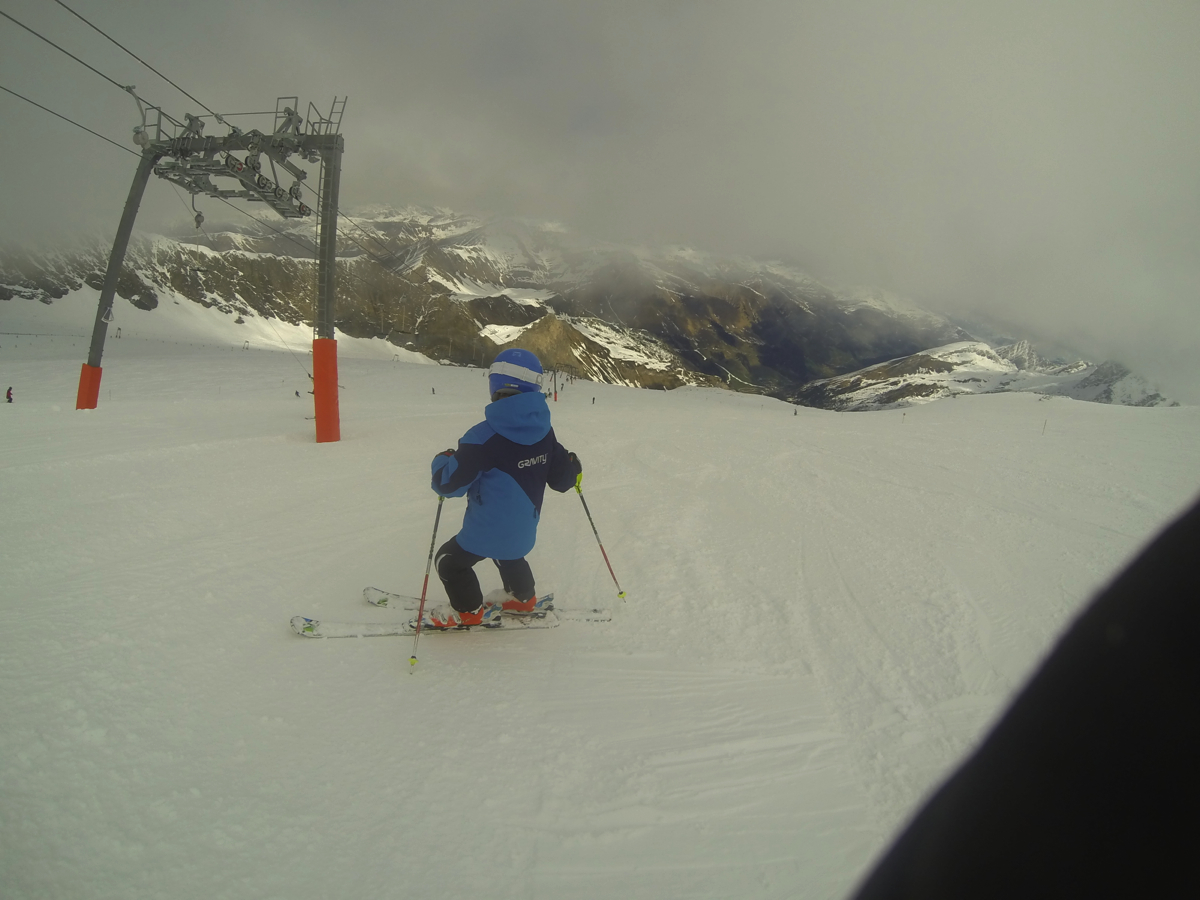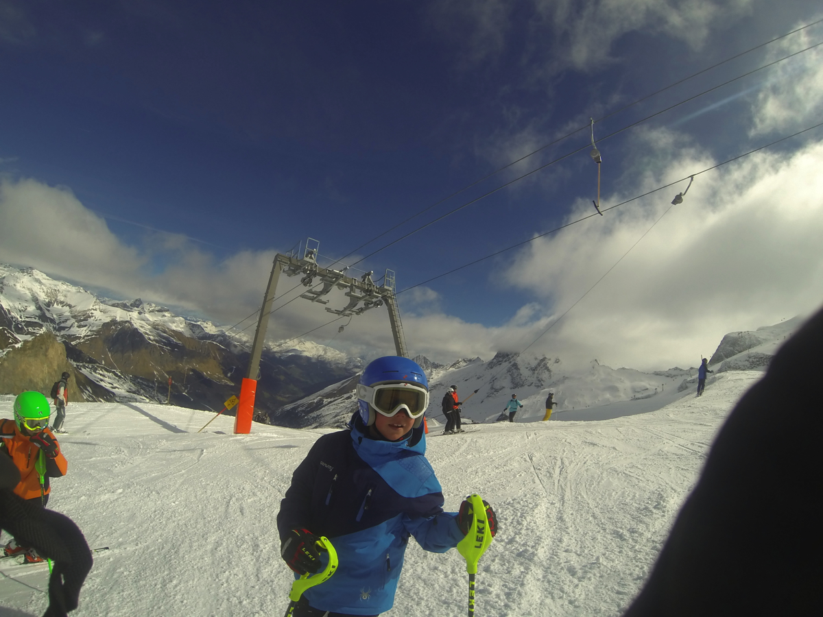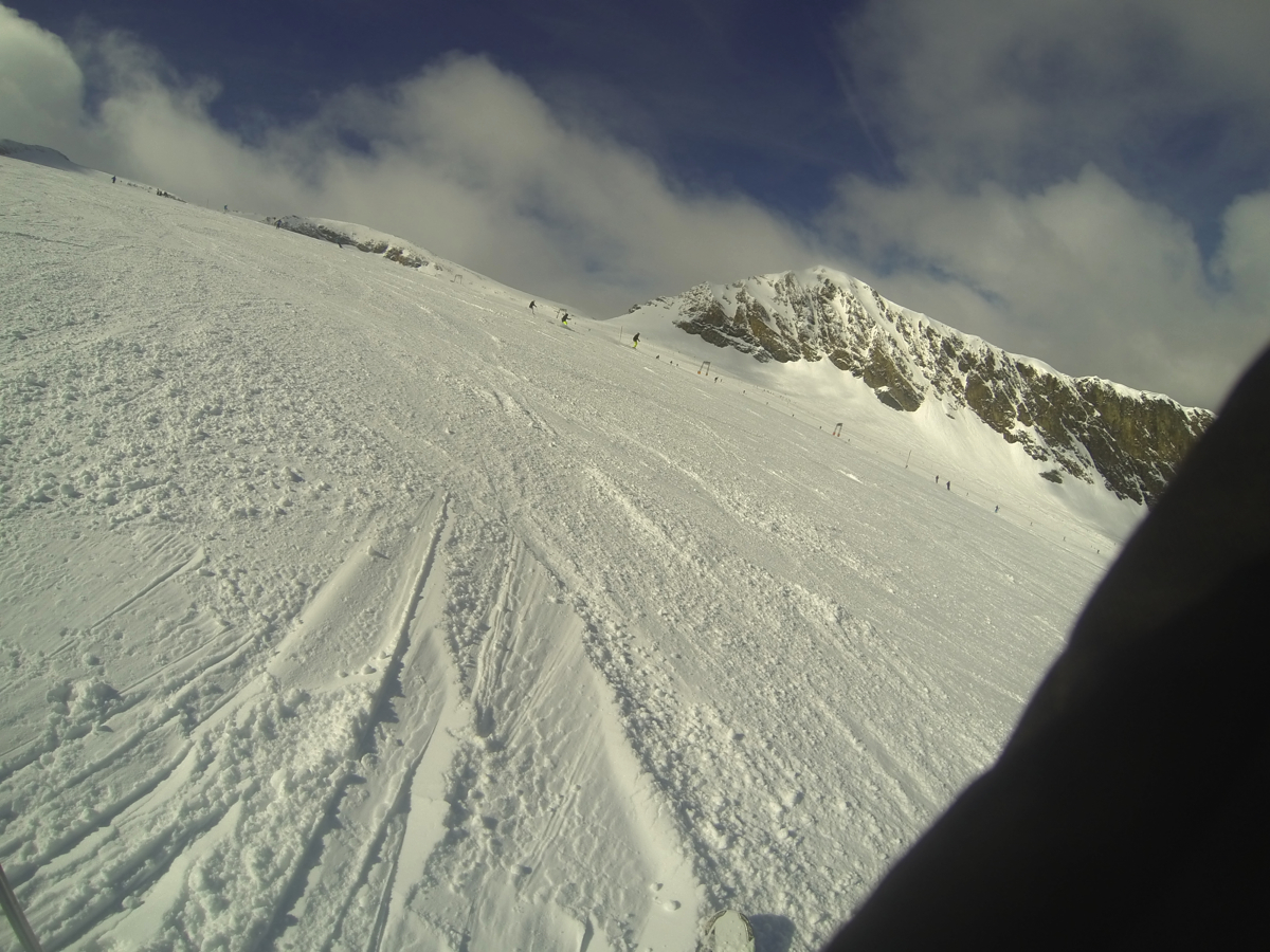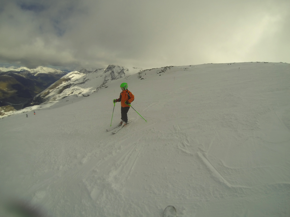 6th April – Day 1 – Sunday – At high level the glacier must have had a big dump of snow, as there was around 200mm of powder on top of the bashed icy piste below. Hard work all day, but got loads of good powder experience. Facilities at Hintertux are amazing ! (plus their roast chicken lunch is amazing – need to improve my German so I don’t get a kids portion of chicken !)