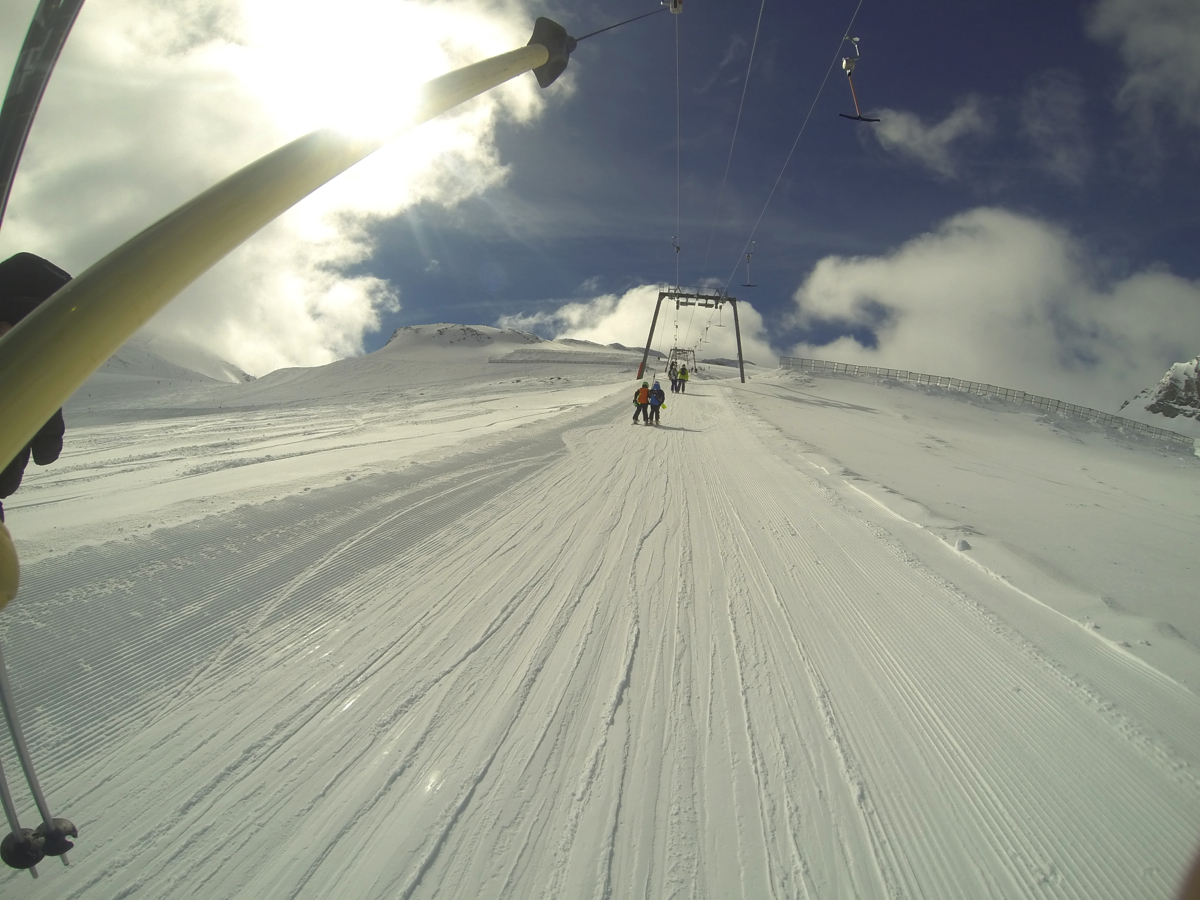 Update: rain at lower levels today. When asked if the conditions on the glacier are as good as yesterday; answer was “Yip”