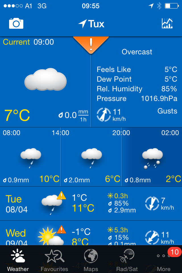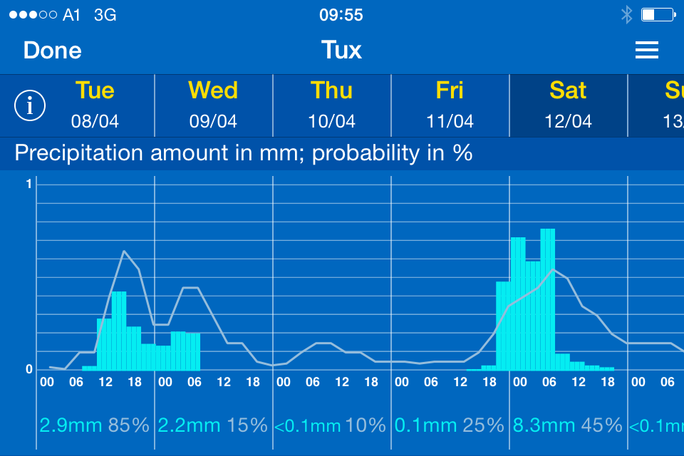8th April – Day 3 – Tuesday – Another warm day with chance of rain / snow at glacier level, but the rest of the week seems to be sunny with low overnight temperatures to keep the snow in good condition.