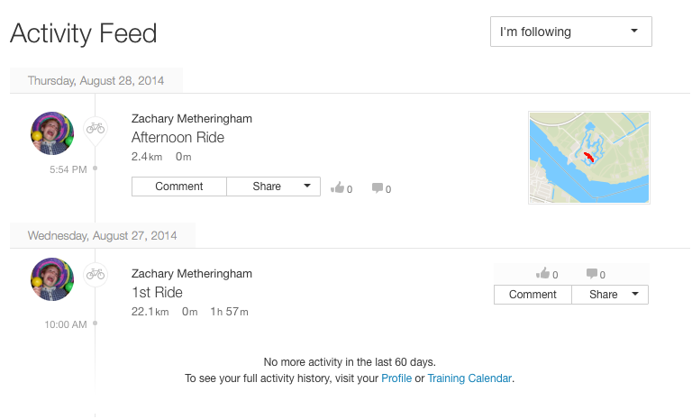 Here is a screen grab for August 2014, which we managed a couple of rides in Holland.